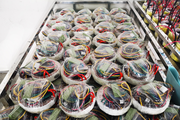 圣元電器的員工將客戶要求定制的環(huán)形變壓器整理整齊,包裹好,保護(hù)好變壓器。
