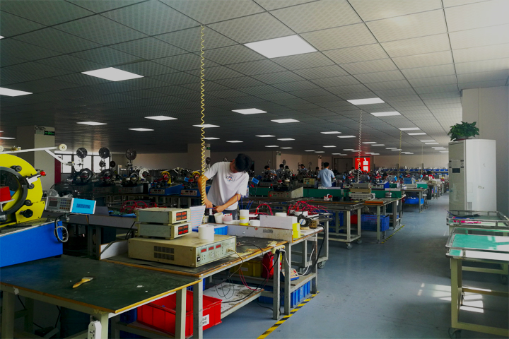 圣元電器專業(yè)制造環(huán)形變壓器13年,生產(chǎn)車間干凈整潔占地面積大,日產(chǎn)變壓器5000余臺。