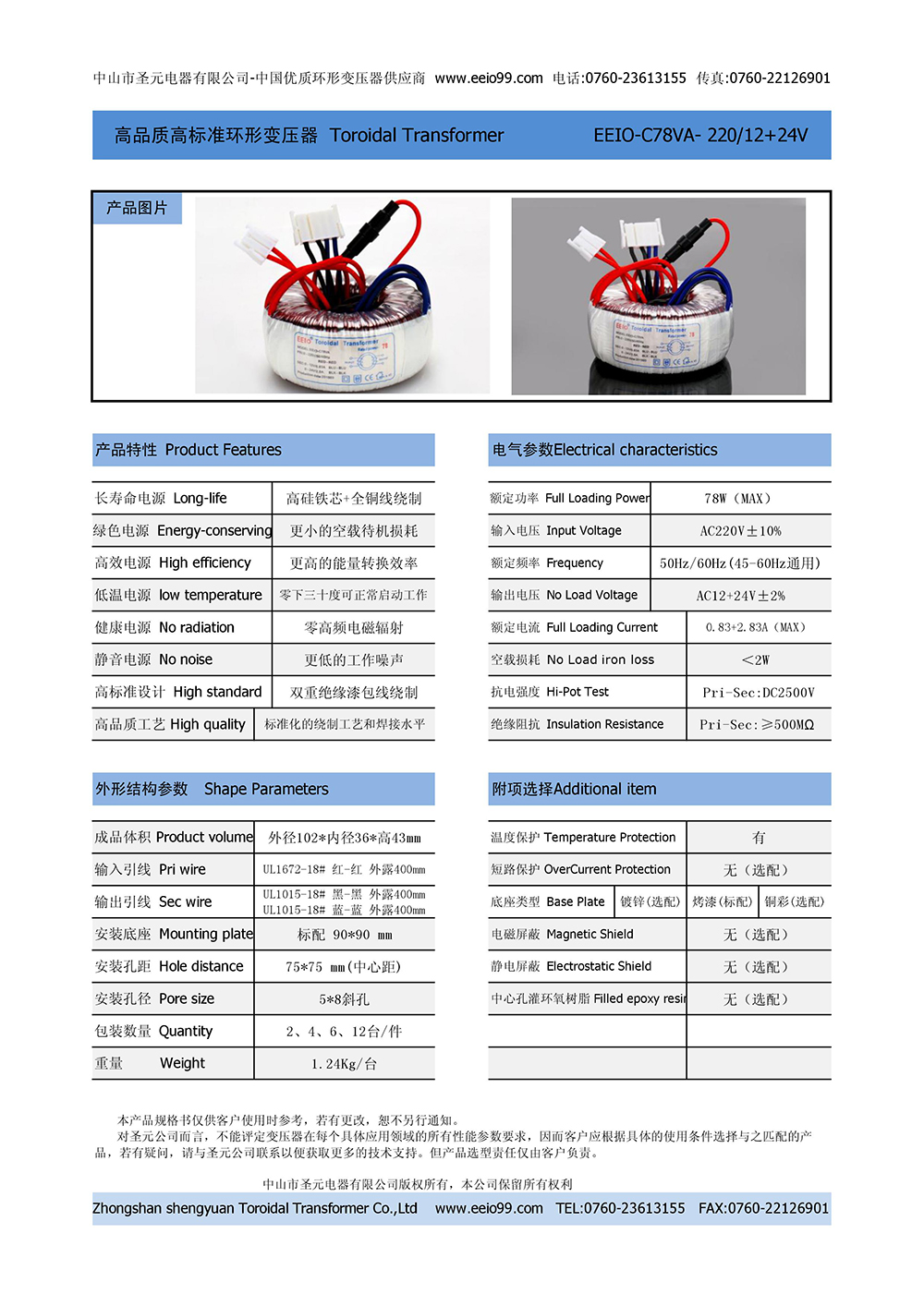 環(huán)形變壓器120W,可量身定制 [輸出帶短路保護(hù)]+