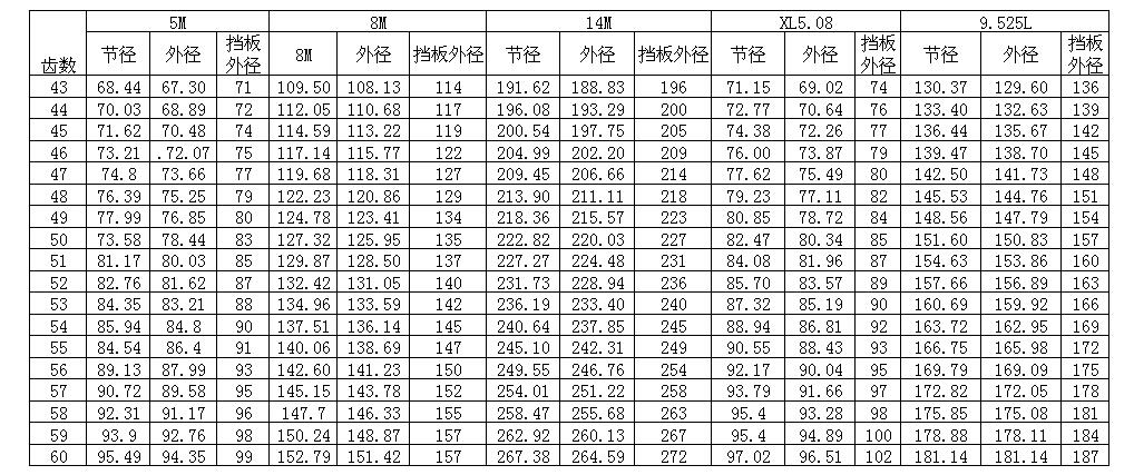 同步帶輪示意圖及尺寸對照表 諾廣廠家提供