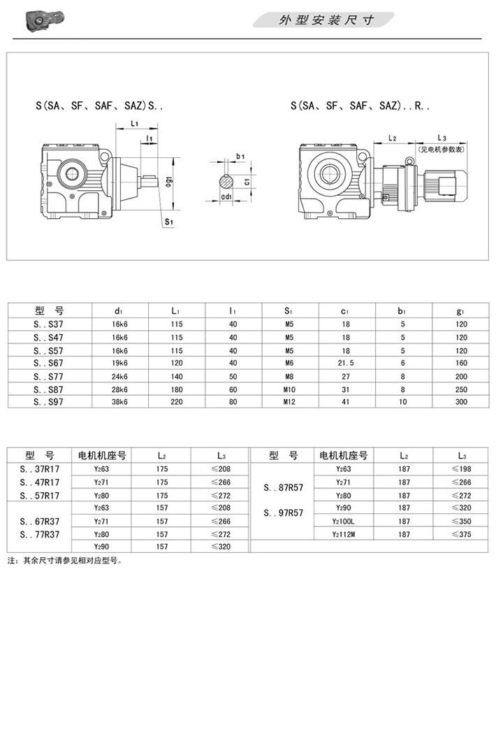 下一篇:S斜齒輪蝸桿減速機(jī)SAT…(軸裝式扭力臂安裝)、SAZ…(軸裝式端面小法蘭安裝)外形安裝尺寸